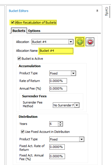By default, the “Buckets Editor” is initially locked to prevent editing. Check the box “Allow Recalculation of Buckets” to create or edit allocations.